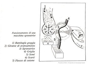 Il procedimento tecnicamente in italiano si definisce sgranatura. L'operazione di sgranare il cotone si chiama "ginnare" e "ginnatrice" è un sinonimo in italiano della stessa macchina.