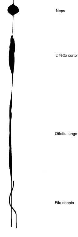 LA DIFETTOSITA' NEI FILATI E NEI TESSUTI PREMESSA: per la natura stessa dei componenti e per la lunghezza del ciclo produttivo caratterizzato dal passaggio su molte macchine, i prodotti tessili possono essere portatori di difetti di vario tipo, originati ai diversi stadi della lavorazione. Conseguenza di tali difetti sono la difficoltà di lavorazione nei passaggi successivi nel caso di semilavorati, il cattivo aspetto visivo, la non rispondenza allo scopo del prodotto. I difetti si distinguono in visibili, quando appaiono nella loro evidenza senza particolari ricerche ed in occulti, quando non sono percepibili visivamente ma fanno sentire i limiti qualitativi nell'utilizzo dei manufatti. DIFETTI NEI FILATI DI FIBRE DISCONTINUE Le diverse fasi della Filatura e l'impiego della materia prima, se non è Stato seguito un corretto piano di lavoro e non sono state esercitate le necessarie attenzioni. possono originare molti difetti sul filato, parte dei quali possono venire parzialmente rimediati con l'operazione di stribbiatura, ma altri non possono venire eliminati e vanno a declassare il prodotto. I difetti sul filato si possono così sintetizzare: I) IRREGOLARITA' DI TITOLO, di lungo periodo, quando si alimenta al filatoio stoppino irregolare. si hanno differenze di pressione sui cilindri di alimentazione. ci sono avvolgimenti di fibre sui cilindri di Stiro che ne falsano il diametro, si sbaglia l'impostazione dello stiro sul filatoio. 2) IRREGOLARITA' DI MEDIO PERIODO, conseguenti ad irregolarità dello stoppino a breve periodo. falsi Stiri nello stoppino in alimentazione, irregolare rotazione dei cilindri di pressione o delle cinghiette di Stiro. 3) IRREGOLARITA' DI BREVE PERIODO, quando si ha diversità eccessiva tra le fibre componenti con conseguenti onde di stiro, eccessiva torsione degli stoppini, cilindri di pressione consumati ed eccentrici, cilindri di Stiro eccentrici o comandati da ingranaggi con denti rovinati, stiri eccessivi, Scartamenti troppo larghi, vibrazioni dei cilindri della macchina. 4) ASPETTO DEL FILATO, quale filato peloso per stiro eccessivo, velocità dell'anellino troppo alta, anellino sporco, umidità ambientale troppo bassa; filato sporco od unto per passaggio anomalo del filo; presenza di "fiamme" sporadiche; filato doppio per mariage in fase di filatura a causa di occlusione dei fori di aspirazione dei fili rotti; presenza di ammassi di polvere per cattivo funzionamento dei pulitori viaggianti; presenza eccessiva di neps e di guscette per cattiva regolazione degli organi cardanti; ingrossamenti saltuari del filo, accompagnati a tratti fini, per eccessiva torsione dello stoppino o stiro troppo basso; piccole asole sul filato per scartamento troppo chiuso od utilizzo di anellini troppo leggeri. Definizioni e tipi di difetti del filato Il processo di filatura fornisce un filato relativamente uniforme, ma comunque non è mai possibile evitare completamente le variazioni di diametro del filato. Per prima cosa occorre quindi distinguere fra le normali irregolarità del filato ed i difetti veri e propri. Possono essere definiti difetti del filato le irregolarità che potrebbero causare difficoltà negli stadi di produzione successivi o difetti nel prodotto finale La stribbiatura del filato può essere definita come la rilevazione e l'eliminazione dei difetti. Tale operazione viene eseguita durante il processo di roccatura Le stribbie fanno quindi parte della roccatrice. L'eliminazione di un difetto implica l'interruzione del processo di roccatura: la rocca deve essere fermata, il difetto eliminato e le estremità del filo nuovamente congiunte. t chiaro che questa interruzione comporta una perdita nella produzione. La stribbiatura è quindi sempre un compromesso fra la qualità e la produzione, ossia fra il massimo dei difetti di filato che potrebbero essere eliminati e il minimo di perdite nella produzione ancora tollerabile. Questo compromesso impone che si faccia distinzione fra: - difetti del filato accettabili ossia quelli che possono essere tollerati nell'interesse del rendimento della macchina e - difetti intollerabili. In base alla forma, è possibile distinguere i diffetti seguenti: partendo dal diametro medio del filato (diametro normale o diametro di base) si fa distinzione fra assottigliamenti e ingrossamenti, a seconda che si riscontri un aumento o una diminuzione del diametro. Gli ingrossamenti vengono ulteriormente suddivisi in: - neps, ossia difetti estremamente corti (fino a pochi mm) ed estremamente spessi (un multiplo del diametro di base). - difetti corti, ossia difetti di una lunghezza limitata (da ca. 0.5 fino a 10cm), ma di spessore notevole (pari a 1.8 fino a 3.8 volte il diametro di base). - difetti lunghi e fili doppi, quali difetti di lunghezza notevole (da 5 a 200 cm), ma spessore limitato (da 1.2 fino a 1.8 volte il dimetro di base).