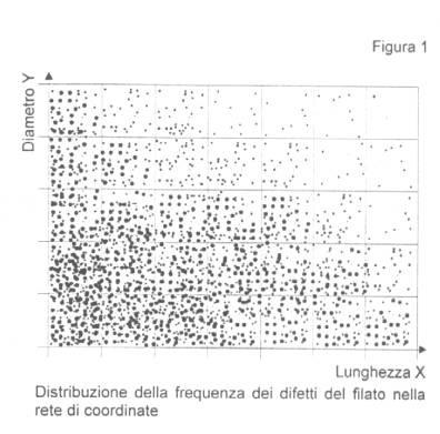 I difetti del filato vengono definiti da una dimensione trasversale ed una dimensione longitudinale. La dimensione trasversale viene indicata come multiplo del diametro di base, mentre la dimensione longitudinale è in centimetri. La definizione dei difetti del filato, in base alla lunghezza ed allo spessore, permette di rappresentarli in un sistema di coordinate cartesiane. L'ordinate (X) rappresenta la lunghezza in cm, mentre l'aumento in diametro è rappresentata della ascisse (Y). In questo modo ogni difetto del filato può essere rappresentato da un punto nel piano delle coordinate. Inoltre, il piano delle coordinate può essere suddiviso in singoli campi (classi) in modo da poter riunire (classificare) in gruppi e contare le irregolarità similari. In questo modo si può tener conto di un ulteriore criterio estremamente importante, ossia quello della frequenza dei difetti del medesimo tipo (si veda la figura 1).
