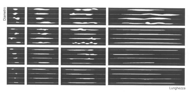 Come gia menzionato, in base alla forma si distinguono vari tipi di filato. Nel piano delle coordinate è possibile delimitare delle zone relative ai difetti del tipo seguente: