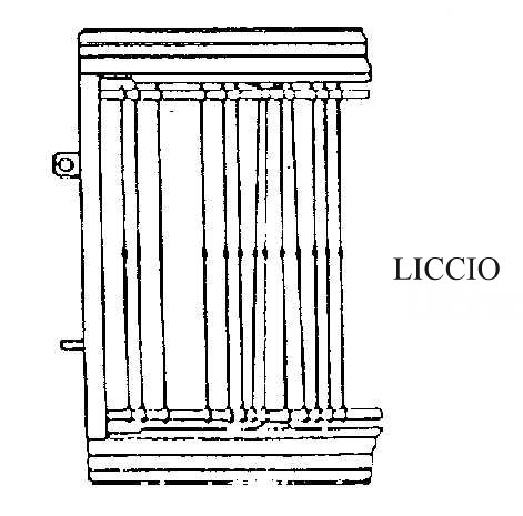 I fili di ordito dal subbio passano alle maglie dei licci ,che ne comandano