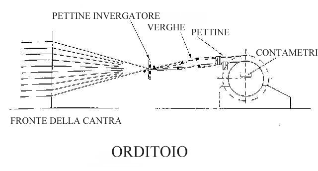 telaio e tra i fili stessi. Le operazioni di preparazione dell'ordito sono