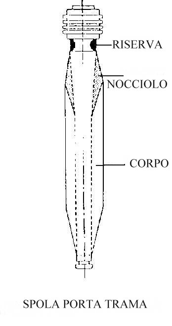 La trama è preparata su spole da inserire nella navetta che la trasporta