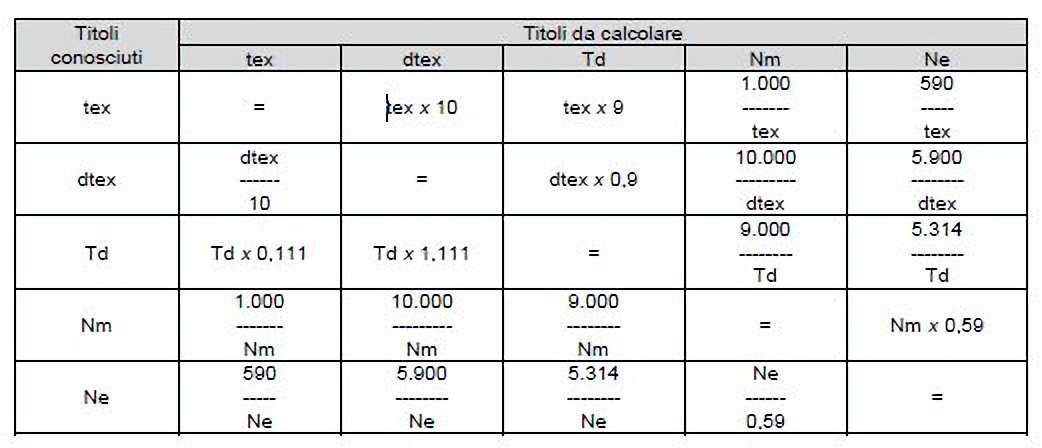 I diversi titoli vengono impiegati per indicare la finezza dei vari manufatti tessili,