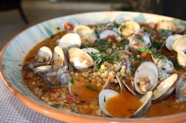 Lavate bene le arselle sotto l’acqua corrente quindi lasciatele a bagno per qualche ora in abbondante acqua appena tiepida leggermente salata. Sgocciolatele, versatele in una casseruola ampia, coprite e tenetele sul fuoco vivace per pochi minuti fino a quando saranno aperte. Tiratele su con la schiumarola e scartate quelle rimaste chiuse. Sgusciatele lasciandone qualcuna con il guscio per la decorazione. Tuffate i pomodori per pochi secondi in acqua in ebollizione, passateli sotto l’acqua fredda quindi pelateli, privateli dei semi e sminuzzateli. Preparate un trito finissimo con gli spicchi d’aglio e una manciatina di prezzemolo e fatelo appassire dolcemente per due minuti in una casseruola con l’olio. Unite i pomodori, mescolate e dopo un minuto aggiungete 3 bicchieri d’acqua e il liquido delle arselle filtrato. Fate bollire per qualche minuto quindi versate la fregola, mescolate, insaporite con sale (poco) e pepe e fate cuocere per un quarto d’ora circa unendo le arselle nell’ultimo minuto. Il risultato dovrà essere una minestra semi-densa simile a un risotto molto all’onda. Servite tiepido.
